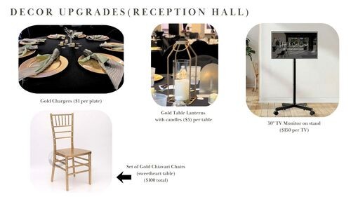 Check any upgrades you will be adding to the reception hall: (Inventory pics below)
